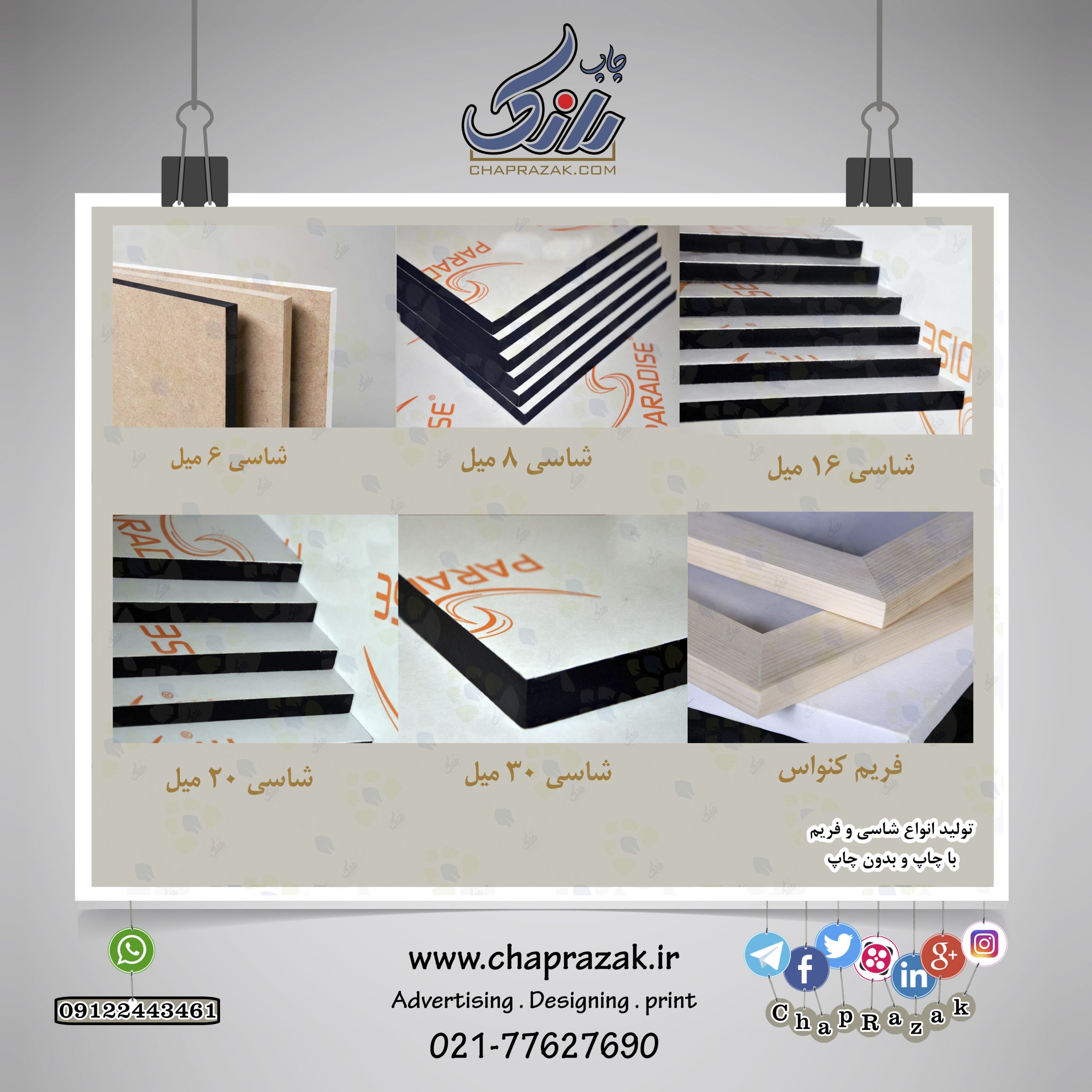 اگر به دنبال چاپ شاسی حرفهای، با کیفیت ممتاز و ماندگاری بالا هستید، چاپ رازک یکی از برترین مراکز تخصصی در تهران برای چاپ عکس روی شاسی در اندازهها و ضخامتهای مختلف است. رازک با استفاده از بهروزترین دستگاههای چاپ و مواد اولیه باکیفیت، تصاویر شما را به زیباترین شکل ممکن روی شاسی اجرا میکند. این مجموعه امکان چاپ در ضخامتهای ۶ میل، ۸ میل، ۱۶ میل، ۳۰ میل و همچنین شاسیهای سفارشی در ابعاد دلخواه را فراهم کرده تا هر نوع نیاز در دکوراسیون، هدیه، چاپ هنری یا پروژههای سازمانی را پاسخ دهد.